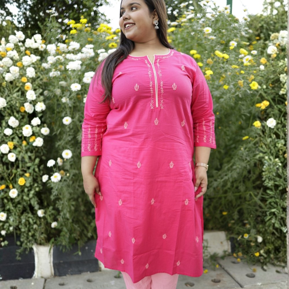 Celebrate the vibrant spirit of Indian heritage with the Kumud Kurta. Drenched in a bold, auspicious Rani Pink and crafted from 100% premium cotton, this piece is a testament to the beauty of detailed hand-craftsmanship and timeless silhouettes.